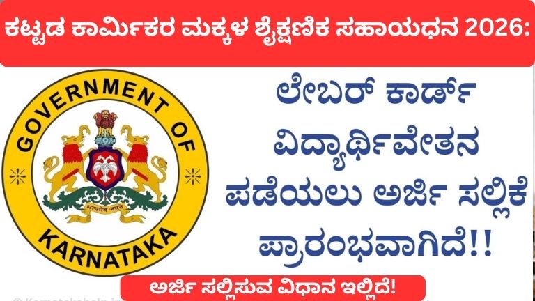 Labour Card Scholarship:ಕಟ್ಟಡ ಕಾರ್ಮಿಕರ ಮಕ್ಕಳಿಗೆ ಪಿಜಿ ವರೆಗೆ ಉಚಿತ ಶಿಕ್ಷಣ: 2026ರಲ್ಲಿ ಸರ್ಕಾರದಿಂದ ಬಂಪರ್ ಸಹಾಯಧನ – ಅರ್ಜಿ ವಿಧಾನ ಸಂಪೂರ್ಣ ಮಾಹಿತಿ