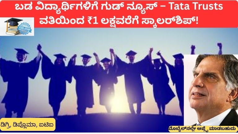 ಬಡ ವಿದ್ಯಾರ್ಥಿಗಳಿಗೆ ಸಿಹಿ ಸುದ್ದಿ! ₹1 ಲಕ್ಷವರೆಗೆ Tata Trusts ಸ್ಕಾಲರ್‌ಶಿಪ್ – ಡಿಗ್ರಿ, ಡಿಪ್ಲೊಮಾ, ITI ಓದುಗರಿಗೆ 80% ಫೀಸ್ ಸಹಾಯ